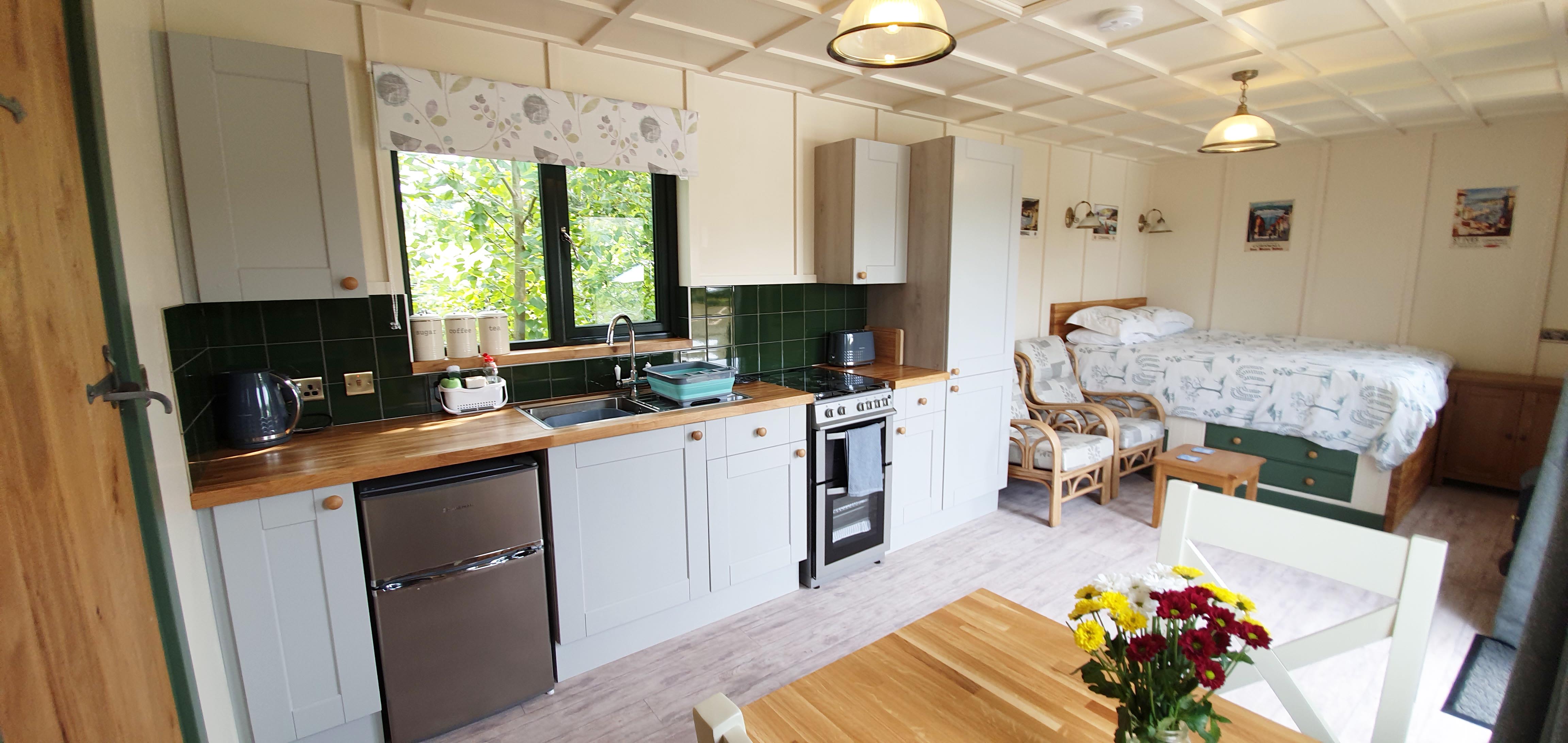 Mallard is a spacious 25ft by 10ft with a fully fitted kitchen and separate bathroom. The cabin is well-insulated, double glazed, and decorated to a luxury finish in keeping with its surroundings. Mallard has everything you need for a relaxing, comfortable stay.